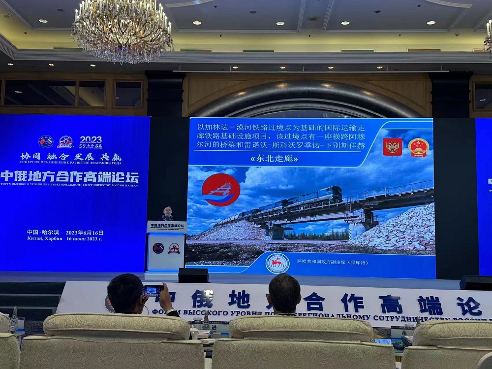 薩哈(雅庫特)共和國政府副主席斯捷潘諾夫、阿穆爾州吸引投資署副署長赫姆拉·謝爾蓋及雅庫特鐵路股份公司執(zhí)行董事顧問阿布拉莫夫·阿列克謝先后在不同的專場活動中就漠河-加林達國際運輸走廊項目進行推介,重點闡述了項目的廣闊發(fā)展前景及實施計劃。
